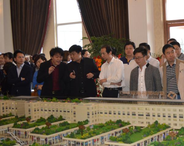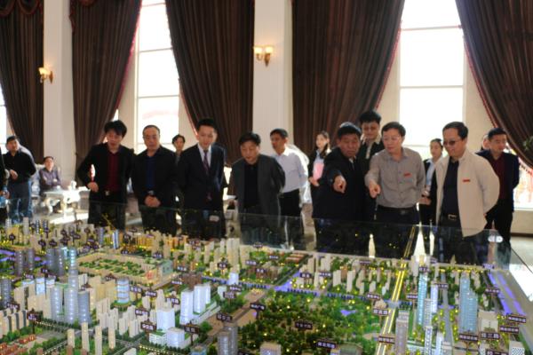 人大主任王俊峰、政協主席吳忠孝、副縣長趙振林、國土局局長張德順、發改委局長田國平、市監局局長李鳳春參觀項目沙盤模型。