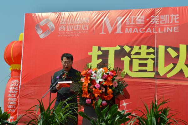 紅星美凱龍家居集團副總裁王琦琦先生發表致辭。在致辭中他確信鹽山是紅星美凱龍向前邁出的重要一步,是集團的一項重大決策方針,通過對鹽山市場的反復考察、論證,我們堅信紅星美凱龍·鹽山國際商業中心在鹽山各級領導的指引下,在社會各界朋友的關心與支持下,必將成就鹽山新輝煌!