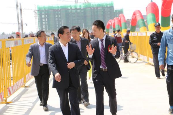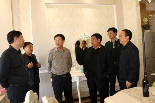 人大主任王俊峰、政協主席吳忠孝、副縣長趙振林、副縣長何智強、發改委局長田國平、市監局局長李鳳春參觀項目公寓樣板間。