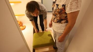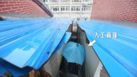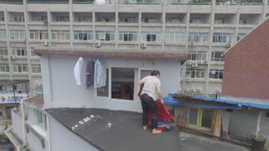 由于地塊限制,過去在造樓時往往會將地界利用到最大限度,貼著馬路邊界建樓,也叫做貼界。紙片樓的最窄處往往只有20公分。馮廟新一家三口就住在這樣一個紙片樓頂層的尖角頂端。儲物難、上樓難、洗衣難、曬衣難、燒飯難、睡覺難、通行難……每天的生活,對于他們來說,就像是在玩闖關游戲。