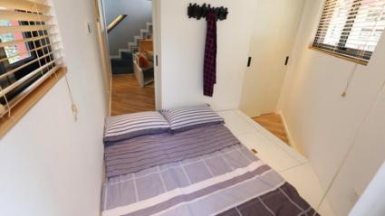 改造后獨立出來的父母臥室 設計師改變傳統(tǒng)設計,在不改變室內(nèi)空間情況下,解決儲物難問題,巧妙通過收納柜來擴大視覺空間,收納柜上方還能變成雙人父母床,下方每個柜子都能儲藏更多零碎雜物。改造后一家三口共睡同一空間內(nèi)的情況,也得到完善解決。 女兒臥室: