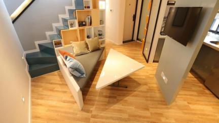 改造后作為女兒臥室的閣樓空間 設計師將女兒房間單獨設計在二層閣樓處,閣樓的可收縮門板可以保證隱私。 3、多功能區(qū)域-死角空間有效利用 集多種功能于一身