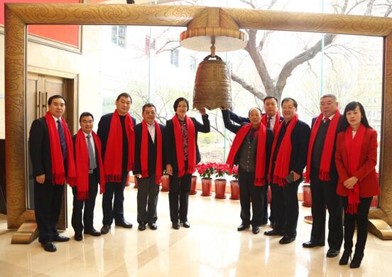 河南金拇指防水科技股份有限公司董事長王建業敲鐘儀式(右一)