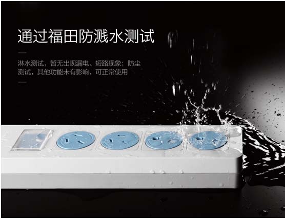 除了以上的功能以外,福田防濺水插座最基本的:內(nèi)置保護門、使用高溫阻燃材料、大間距插孔等都已配置完善,符合新國標標準,各位消費者通過深入了解以后可以放心購買。