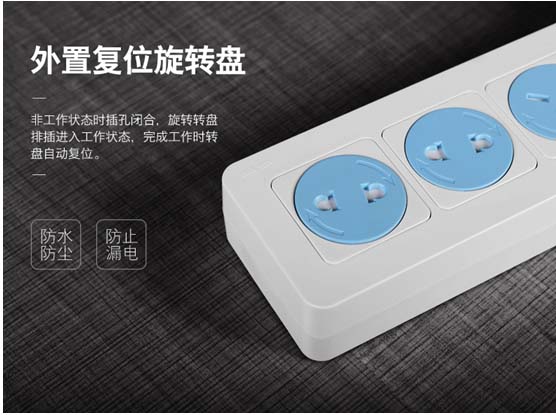 福田防濺水插座在安全性能方面也進行了提升,擁有過載自動斷電保護,當負載功率總和超過額定功率時,就有產(chǎn)生過載短路個著火的風險。在過載危險發(fā)生時及時切斷電源,60s后自動恢復通電使用。在插座的外部設置外置復位旋轉(zhuǎn)盤,在非工作狀態(tài)插孔閉合,旋轉(zhuǎn)轉(zhuǎn)盤插座進入工作狀態(tài),完成工作時轉(zhuǎn)盤自動復位。