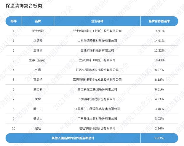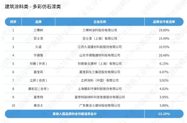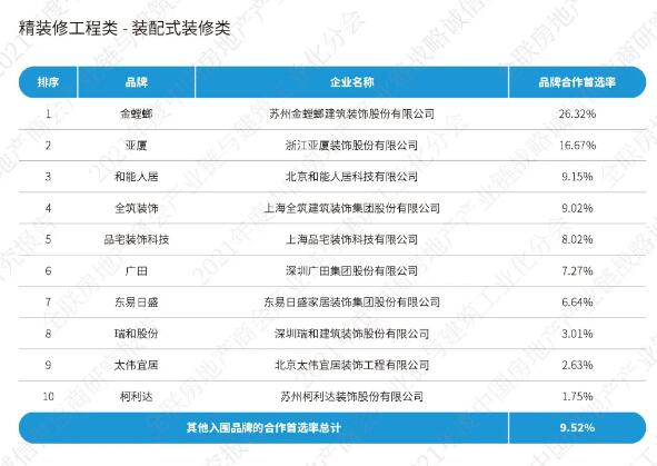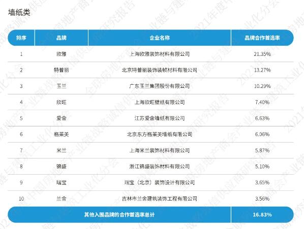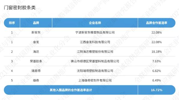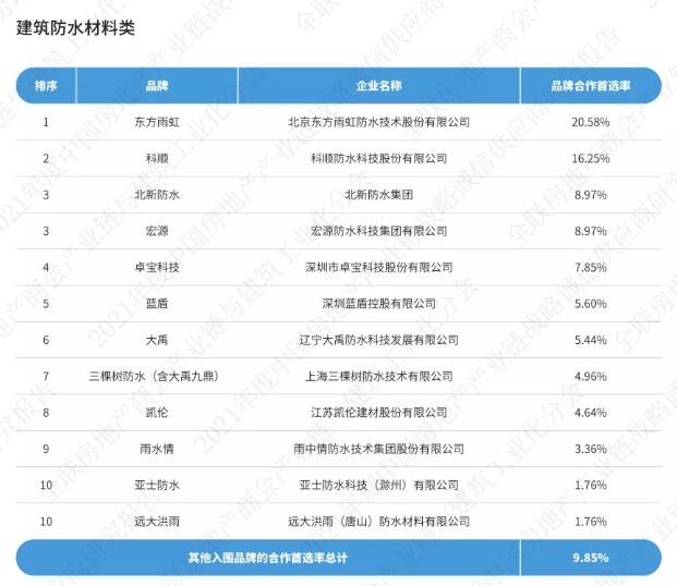 《2021中國房地產產業(yè)鏈戰(zhàn)略誠信供應商研究報告》通過征集、分享、篩選在中國內地從事房地產產業(yè)鏈相關經營活動的供應鏈企業(yè),按照品牌力、產品力和合作力三大維度,從品牌知名度、綜合實力、核心競爭力、研發(fā)實力、產品品質、戰(zhàn)略合作量、服務能力七大角度出發(fā),以會員推薦、實地調研、問卷訪問、專家評審等途徑方式對供應鏈企業(yè)與我國TOP200房地產企業(yè)以及商會房地產會員企業(yè)的戰(zhàn)略合作情況,進行品牌首選率統(tǒng)計計算。