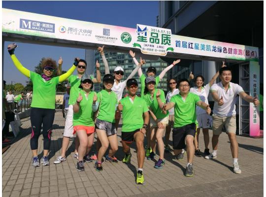7月23日清晨,整座城市尚未蘇醒,一群統一著裝的隊伍已經集結在上海北外灘,總數超1500人的跑步團整裝待發。在參加完高顏值老外超模教練帶領的熱身運動后,他們沿著城市的街道進行了長達8公里的“星品質—2016綠色健康跑”,這是紅星美凱龍以“星品質—2016綠色健康跑”為主題的健康跑活動在上海的首場亮相。同期,紅星美凱龍將在全國百城召集萬人參與健康跑。