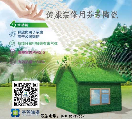 特別是近來,廣東芬芳陶瓷有限公司成果尤為突出,作為全行業唯一一家能夠提供全系列負離子瓷磚(負離子全拋釉磚,負離子金剛釉磚,負離子仿古磚,負離子柔光大理石磚,負離子通體磚,負離子墻磚,負離子木紋磚,負離子微晶石/拋金磚,負離子裸眼3D瓷磚,負離子陶瓷背景墻,負離子陶瓷工藝品等)的研究和生產型企業,利用自生依托高校和科研院所的強大科研能力,成功的開發出了可以永久釋放負離子的晶體材料,并成功將其應用于陶瓷領域,率先成功開發出完全符合國家3C標準的高負離子釋放量陶瓷磚,該陶瓷能夠永久穩定釋放負離子,鋪貼有芬芳負離子瓷磚的室內空間,其空氣負離子濃度可達到2000-30000個/cm3,達到、甚至超過自然森林的數倍水平,讓您足不出戶,享受森林浴。
