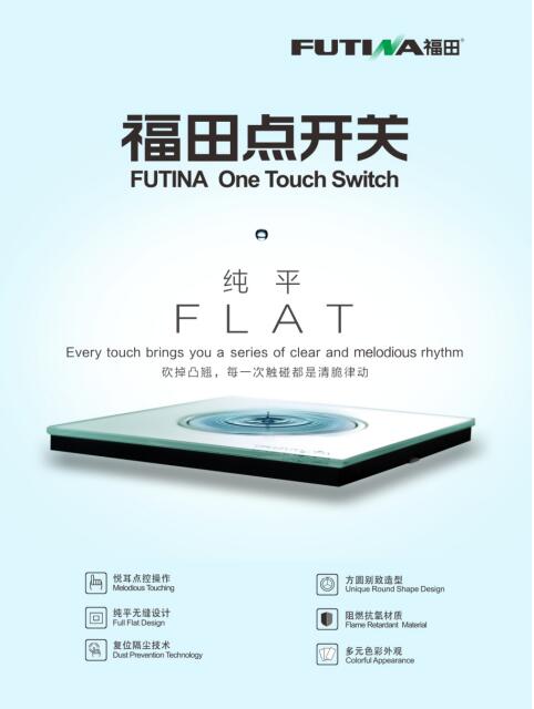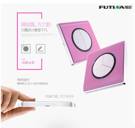 福田點開關用手觸摸,手指觸感細膩平整,無毛刺,外表光滑,線條流暢,讓人愛不釋手。特別是在每款福田點開關上增加LED藍冰指示燈,即使在漆黑夜晚,也可快速找到開關的位置。