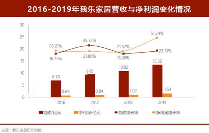 根據我樂家居2020年業績快報,歸母凈利潤為2.16億元至2.31億元,同比增長40.00%至50.00%。也就是說,經過3年半的努力,我樂家居的凈利潤翻了近3倍,成為業內名副其實的“增速王”。