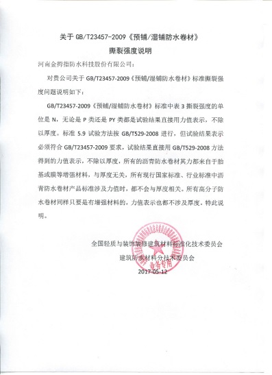 | 2017年5月10日,鄭州航空港經濟綜合實驗區(鄭州新鄭綜合保稅區)建設工程質量安全監督站下發《市政工程質量監督整改通知單》,內容涉及志洋路下穿四港聯動大道隧道工程所使用的河南金拇指濕鋪防水卷材因產品 |