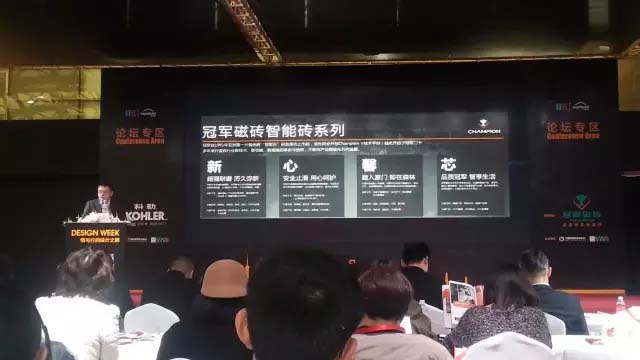 在致辭中,林總為中外設計師朋友講解了冠軍磁磚智能產品。冠軍自創(chuàng)立45年來,始終非常注重產品開發(fā)和創(chuàng)新。