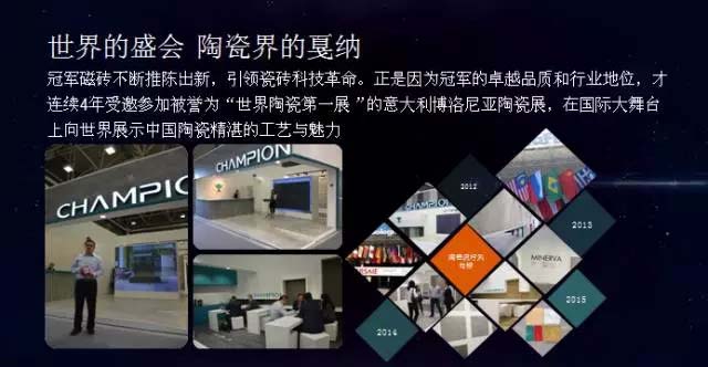 正是因為冠軍的卓越品質和行業(yè)地位,才連續(xù)4年受邀參加被譽為“世界陶瓷第一展”的意大利博洛尼亞陶瓷展,在國際大舞臺上向世界展示中國陶瓷精湛的工藝與魅力。