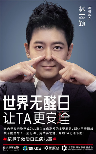 2016世界無醛日即將于4月26日在廣州正式舉行,為響應“世界無醛日”號召,“新陽光-好萊客關i白血病基金”發起了“按鼻子救助白血病兒童”專項公益活動,臺灣知名藝人林志穎率先響應參與活動,1931女子偶像組合、留幾手、回憶專用小馬甲、情感女作家蘇芩等知名人士也紛紛行動起來,為“按鼻子”代言。隨著各界明星、網紅和社會公眾的參與,迅猛刮起一股“按鼻子”熱潮。