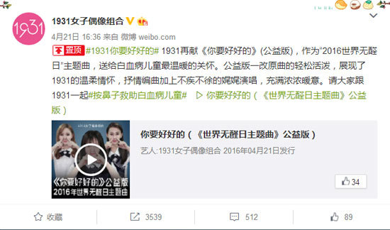 與此同時,作為當紅明星組合——1931女子偶像組合為愛發聲,為“世界無醛日”傾聲獻唱主題曲《你要好好的》(公益版),該曲抒情輕柔,充滿濃濃的暖意。