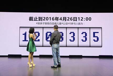 倡導(dǎo)會上,主辦方揭曉了此次#按鼻子拯救白血病兒童#行動H5的參與人數(shù),經(jīng)官方后臺顯示達(dá)到了120多萬人次,引發(fā)了全場熱烈掌聲。可見此次活動在傳播過程中的確引起了社會各界人士的關(guān)注與認(rèn)可。現(xiàn)場多項發(fā)布環(huán)節(jié)都創(chuàng)造了行業(yè)先例,創(chuàng)新與科技并存的形式為行業(yè)的活動發(fā)布會提供了很有意義的借鑒。
