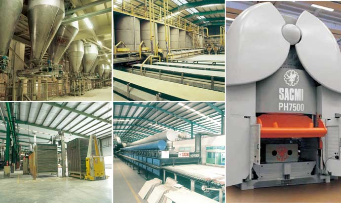好馬配好鞍,好原材也要配好設備。冠軍磁磚不惜增加成本,全線采用世界一流設備,其中95%的設備為進口。無論是7500噸高壓成型機、精密高溫電腦控溫窯爐、CMF全程電腦自控供粉系統及3D數碼噴墨印刷設備等,都充分展現了冠軍磁磚對于生產工藝的精益求精,使得產品在平整度、色差、吸水率等幾處核心指標,能夠達到無可挑剔的世界級標準。