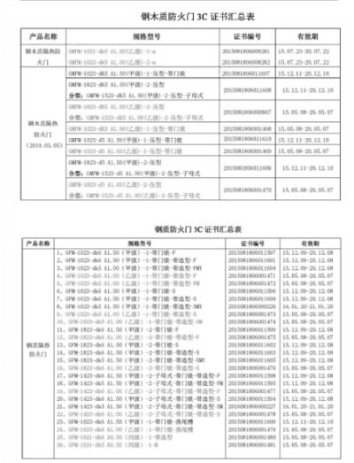眾所周知,防火門是各類建筑中最常見的可啟閉防火分隔構件,符合要求的防火門具有良好的耐火隔熱性、耐火完整性及防煙霧穿透的性能,并具備在火災時人員通過后自行關閉的功能,確保發揮其防火分隔作用。 金大門業的鋼質、鋼木質防火門嚴格遵守國家標準,始終將產品質量置于企業發展首位,在耐火關鍵原材料/元器件的采購、防火門制造過程、例行檢驗和確認檢驗等各環節嚴加管控,確保生產的產品一致性符合、質量穩定,也正因如此,金大門業才有實力獲得國家防火門3C強制性認證的認可,榮獲由全國工商聯家具裝飾業商會頒發的2016中國門業“品牌·創新”體系創建活動中國"防火門十大品牌"。