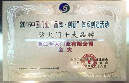 金大門業獲中國“防火門十大品牌”榮譽稱號