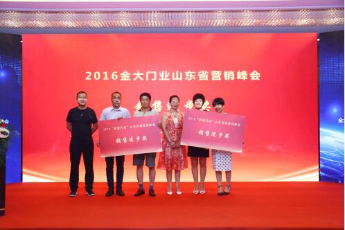 今年,金大門業(yè)山東區(qū)域也出了許多非常優(yōu)秀的經(jīng)銷商,他們能夠把握機(jī)遇,財(cái)富,用智慧和汗水實(shí)現(xiàn)了自己的價(jià)值!在峰會現(xiàn)場舉行了盛大的頒獎典禮,分別頒發(fā)了“銷售冠軍獎”,給予文登金大20000元獎勵,以及“銷售進(jìn)步獎”,給予牟平金大、濟(jì)寧金大、城陽金大、壽光金大各5000元獎勵。