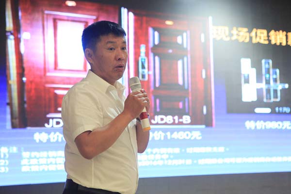 峰會在金大門業東北分公司總經理陳輝先生的講話中拉開帷幕,陳總對百忙之中前來參加此次盛會的經銷商朋友表示了誠摯的歡迎和由衷的感謝。緊接著,對公司在2016年上半年的概況進行了深入總結,并對下半年的發展進行了戰略規劃和部署。