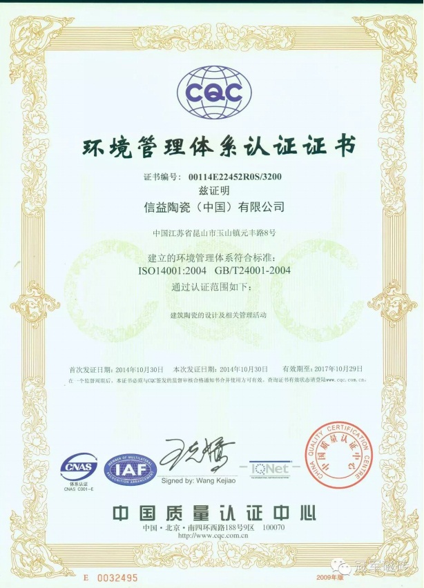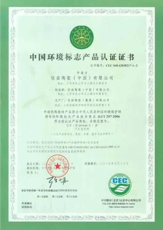 冠軍磁磚全廠按照世界最高等級的綠色、節能、環保標準設計規劃,不僅保證產品品質的穩定,減少費損,更節省能源,真正將綠色環保落到了實處。作為對綠色實踐的回報,冠軍磁磚成為全國首家通過ISO9001國際質量認證、ISO14001環境管理體系認證, CCP(中國綠色選擇)認證, ISO14025 III型環境標志認證, ISO14064國際標準溫室氣體核查的瓷磚行業企業。