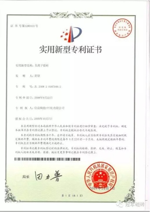 冠軍磁磚作為享譽華人瓷磚最為悠久的品牌,不斷向更高成就挑戰,經過研發創新,運用冠軍獨有的“負離子專利技術”,通過運用高純度負離子粉,在瓷磚胚體形成一層負離子功能層,讓產品可以永久性釋放出負離子,能夠有效清除空氣內甲醛、氨及苯系物,增強人體免疫力,改善呼吸系統,從而促進人體各項技能,確保人們的身體健康。冠軍磁磚不僅品質過硬,而且健康環保,能夠在國內外市場中獨領鰲頭也就不以為奇了。