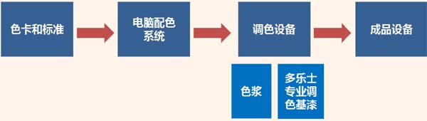 其它建筑涂料品牌的色扇是基于某個色彩標準體系或某個色漿公司的色彩標準來印制的。阿克蘇諾貝爾擁有一套自主完備的色彩體系與色彩管理模式。能保證顏色輸出的準確性,控制成本。作為選色第一步使用的色卡,其制作是由全球總部統一印制發放,保證了色彩標準的全球統一。再從調色使用的工具設備到色漿和工藝,都用統一的標準進行管理,保證了選色到輸出的一致性。