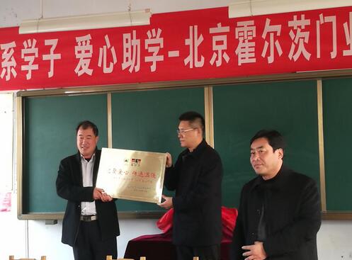 霍爾茨木門總經理趙崇聯和牛嵐希望學校校長舉行捐建揭牌儀式