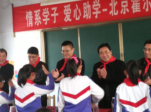 孩子們為霍爾茨木門和縣委、學校領導系上紅領巾,感恩他們對學校的幫助與支持