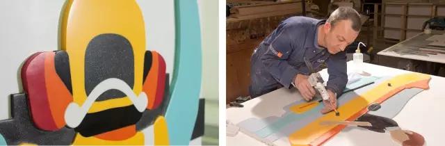 謝菲爾德的室內墻面專家們,運用CNC技術,把杜邦(TM)可麗耐(R)的板材切割成一塊塊“拼圖”小塊,然后仔細地把小塊組成大塊,無縫拼接,加熱成形,這個過程需要手工處理數個小時。精心打造的效果是十分顯著的,于是乎,新醫院多了些創意、個性、令人難以忘懷的特征,也方便了來往人群,快速導航成為新亮點。