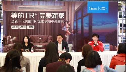 美的集團中央空調(diào)事業(yè)部國內(nèi)市場部部長黃國強,跳水奧運冠軍林躍、知名設(shè)計師王鳳波接受媒體采訪