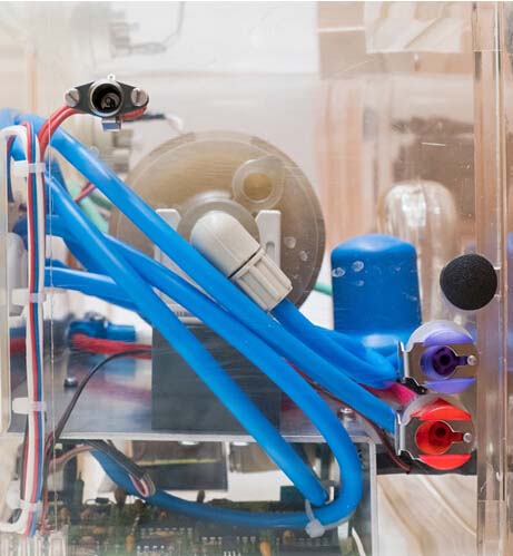但是,RO膜還未在德國凈水設備上普及,要是使用此項技術需要對凈水機重新整合系統,包括泵、結構、管路等都是考驗,如何匹配好,又能確保出水質量達標,這些都是不確定的。這些復雜的工程問題難倒了別人,但是對于Erich先生來說,都是可以解決的,因為他畢業于電子工程專業,并且在許多知名的企業的領導層任職過電子工程師,因此具有深厚的技術專業背景,在開發的過程中他親自上陣,從圖紙設計到產品優化調試每個步驟他都參與其中,終于經過了近百次的實驗,試制樣機,首款采用RO膜的桌面放置的凈水機問世。