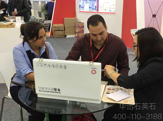 在華迅實業的展區中,連續四天,中外參觀客戶絡繹不絕,意向客戶和成交客戶接踵而來,忙得現場工作人員一刻也停不下來。當然,華迅石英石之所以擁有如此高的人氣和成交率,與它20多年來的發展沉淀和持續創新是分不開的。