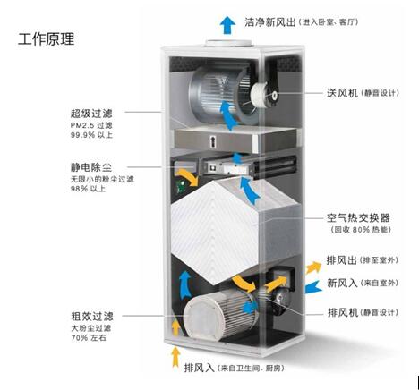 遠大潔凈新風系統 24小時持續不斷地進行新風換氣,排出屋內包括甲醛在內的有毒氣體,同時引進室外新鮮空氣,持續釋放高壓靜電殺菌,99.9%過濾PM2.5,使室內的空氣始終比室外潔凈100倍,真正改善新裝房室內空氣污染嚴重的現狀。相比傳統通風設備,遠大新風系統,不僅風量更大、凈化速度更快。同時具有新風熱回收功能,節約能耗。目前遠大潔凈新風已服務全國近百萬用戶,多次應用在政府、學校、醫院、住宅、寫字樓等多個不同類型的場所,例如:APEC會議、上海世博會、湖南省政府、搜狐大樓、萬達集團、清華附中等。