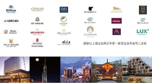 作為眾多國際高端酒店集團的長期合作伙伴,金可兒在酒店業享有極高口碑,目前,在中國每兩家國際品牌的高端酒店中就有一家采用金可兒床墊。經過多年酒店運營實踐,結合自身高端護脊的健康理念,金可兒已擁有專業完整的酒店供應商資歷,包括量身定制、ICA(國際脊骨神經科學會)認證、高效靈活、完美售后支持等十項全能優勢,打造了“天夢”、“東方之夢”等聞名遐邇的明星床墊。近年來,金可兒還加強了與國內酒店集團的合作步伐,成為開元集團、錦江集團、長隆集團等本土高端酒店集團的金牌供應商。