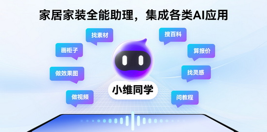 同時,周子超也重磅介紹了三維家官網智能體“小維”,作為家居家裝行業全能助理,“小維”核心功能包括:AI搜索、AI作圖、圖生視頻、AI搭柜、AI報價等,提供一站式智能服務。