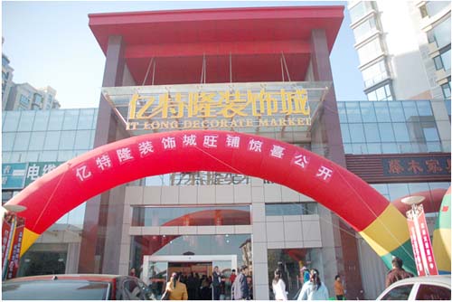 億特隆裝飾城是威海市2008年重點項目之一。該項目處于尚城·國際一層商業內鋪,由威海威韓商城、威海高發商廈投資近1億元共同經營。商城總建筑面積18700平方米,有150個獨立分割的商鋪,主要以經營中高檔裝飾材料為主。根據"品牌裝飾材料專業市場"的經營定位,億特隆裝飾城整合眾多品牌裝飾材料資源,打破建材市場郊區化、大而全的經營格局,構建起與中心區人潮、商氣對接的窗口,打造市中心區規模大、檔次高、品類豐富、購物環境良好的裝飾材料專業市場,為經營商家在市中心區提供裝飾材料展示與銷售為一體的經營總部平臺。