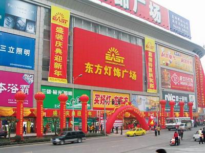 東方燈飾廣場位于重慶市江北區(qū)主干道建新東路五里店商圈中心地帶,交通便捷,總投資近1.5億元,營業(yè)面積達(dá)三萬六千平方米,是重慶市最大的專業(yè)燈具市場之一,為五里店地區(qū)的標(biāo)志性建筑。